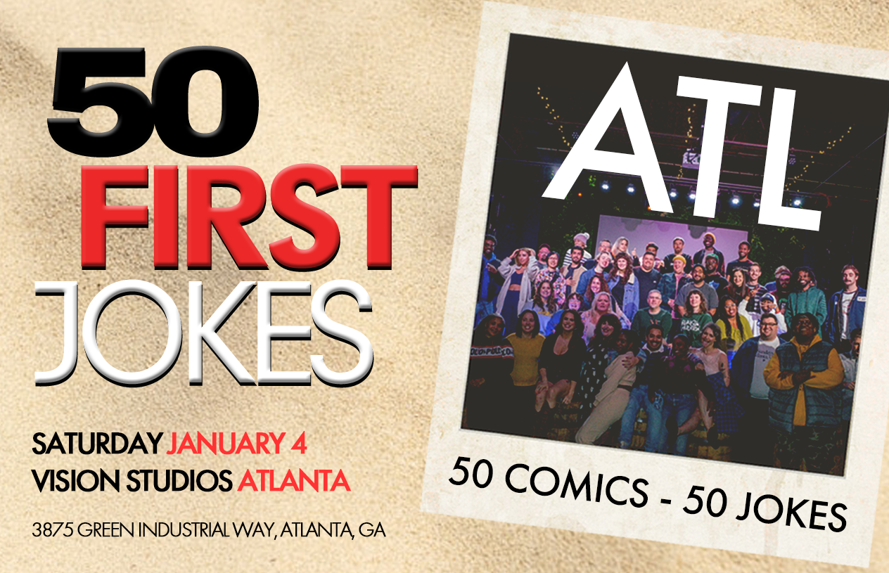 50 FIRST JOKES features fifty of Atlanta's best comics sharing their first new joke of 2025. Each comic gets up to two minutes to share a joke previously untold.